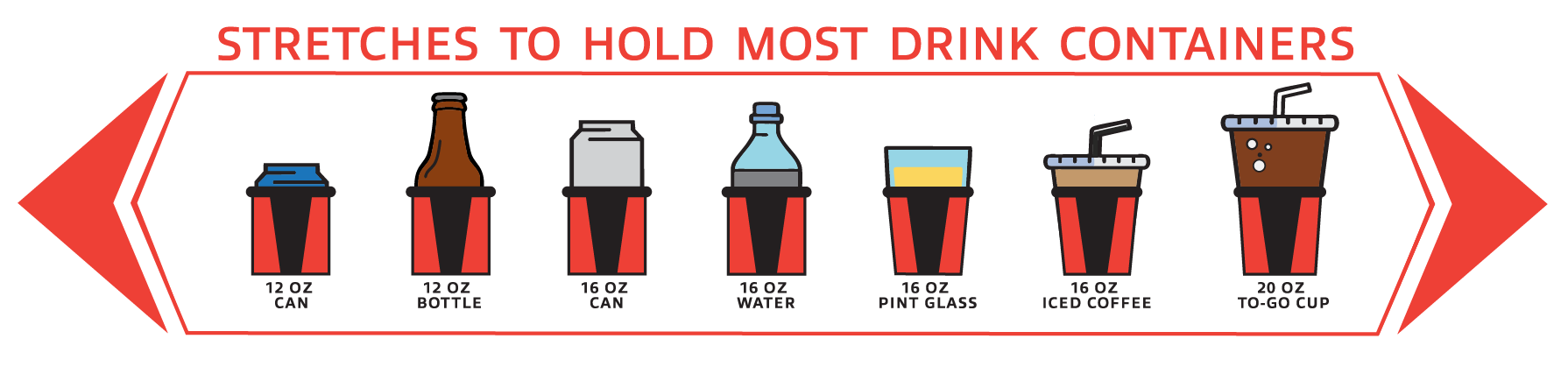 Provides a lot of grip, which is nice for someone who is always dropping stuff, and it does help keep my drink colder for longer. It stretches to fit a tall boy, haha, and seems like it would fit a variety of drinks. I really like the neoprene material, as well!