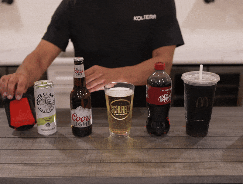 The EasyLOAD Top feature makes loading easier, but a larger drink needs some stretch too! Loading your drink at a 30 degree angle into the Kooleyo is the best way to get started, then use the EasyLOAD Top to guide the Kooleyo up your large drink!